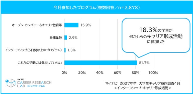 4月単月でキャリア形成活動に参加した割合は18.3%