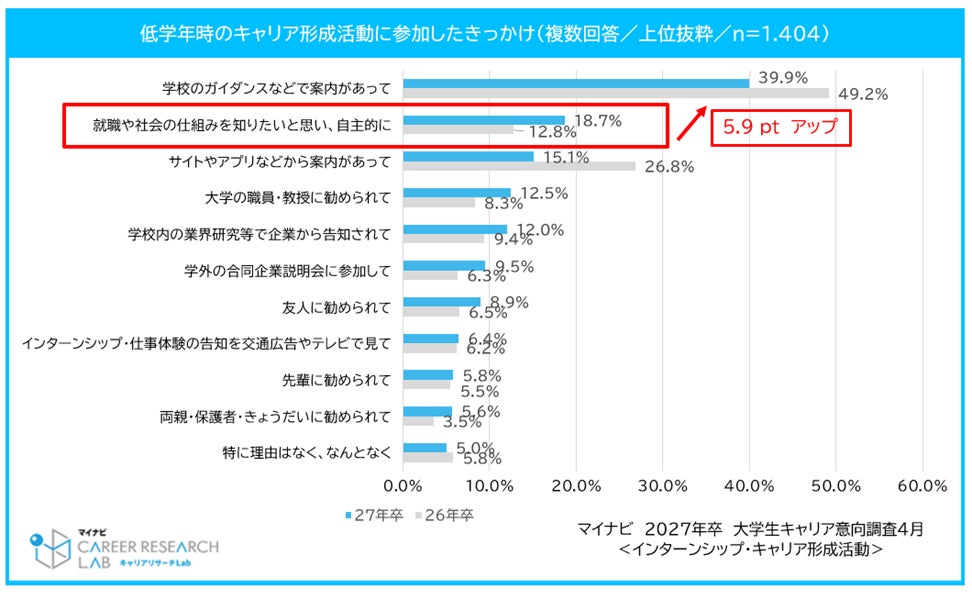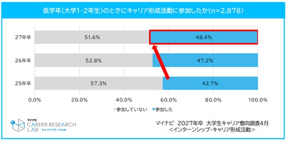 48.4%が大学1・2年生時にキャリア形成活動に参加。自主的な参加が増加傾向