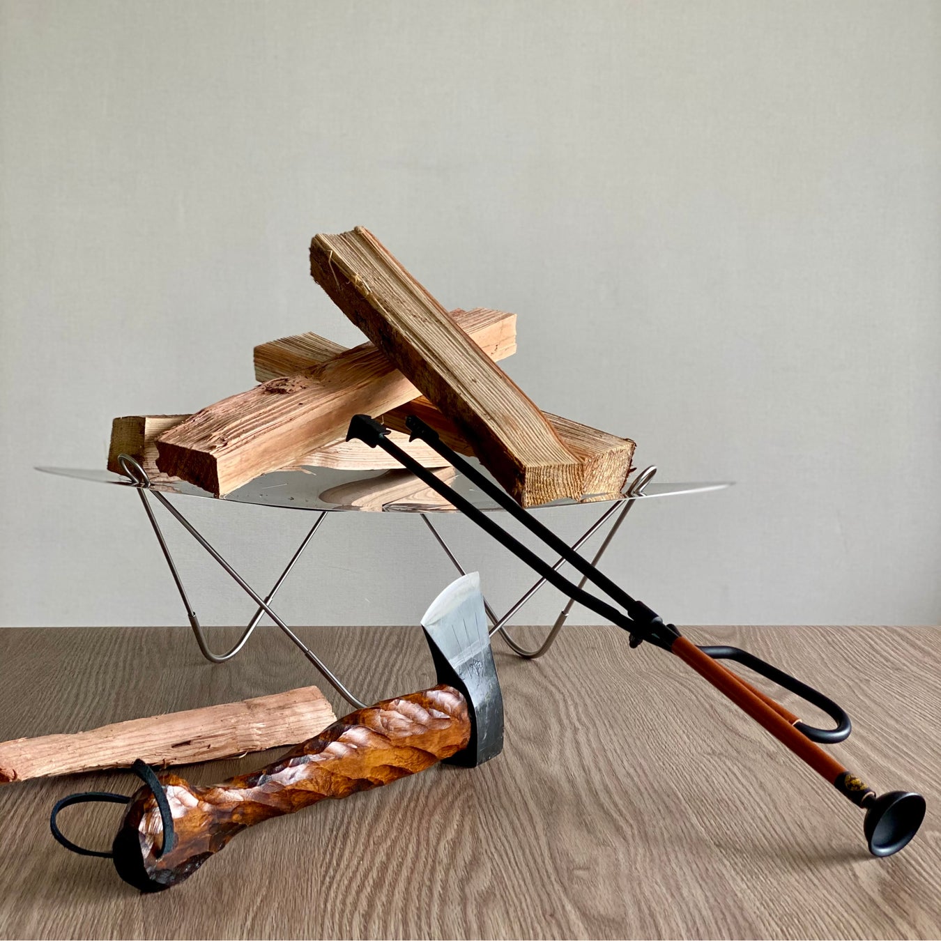 焚き火、炭を扱うにあたり必須のアイテム、火ばさみ、火吹き棒。薪ストーブも使うなら欲しくなる火かき棒。 この3つの機能を一つにして、薪を掴んで置く、空気を吹き込んで火をつける、薪を更に追加する、燃えてきた薪を砕いて、さらに空気を送り込む、この一連の動きをファイヤートランペット一つで行えます。