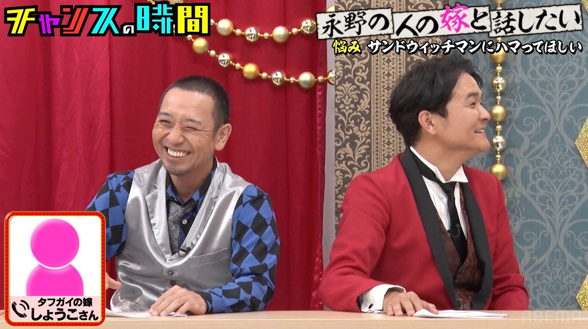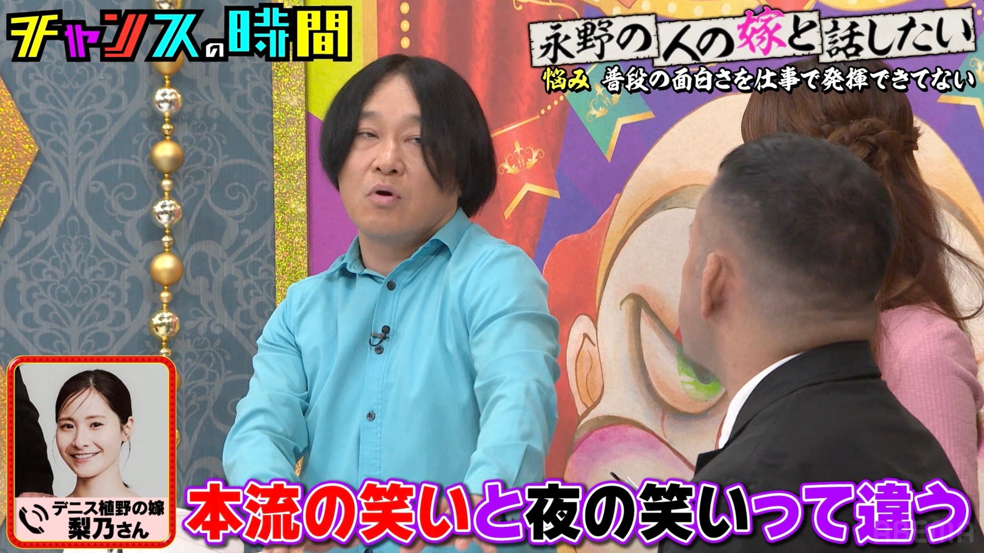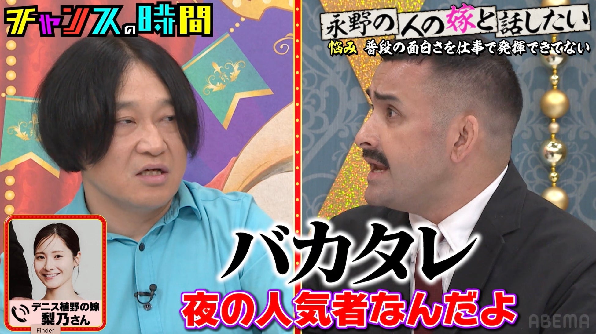 永野の助言にテレビで萎縮してしまうデニス・植野が覚醒!?「酒持ってきてくれ」 芸人夫婦の核心をぶった斬る“永野節”が炸裂!千鳥もざわつく珍アドバイスを連発|『チャンスの時間』無料見逃し配信中