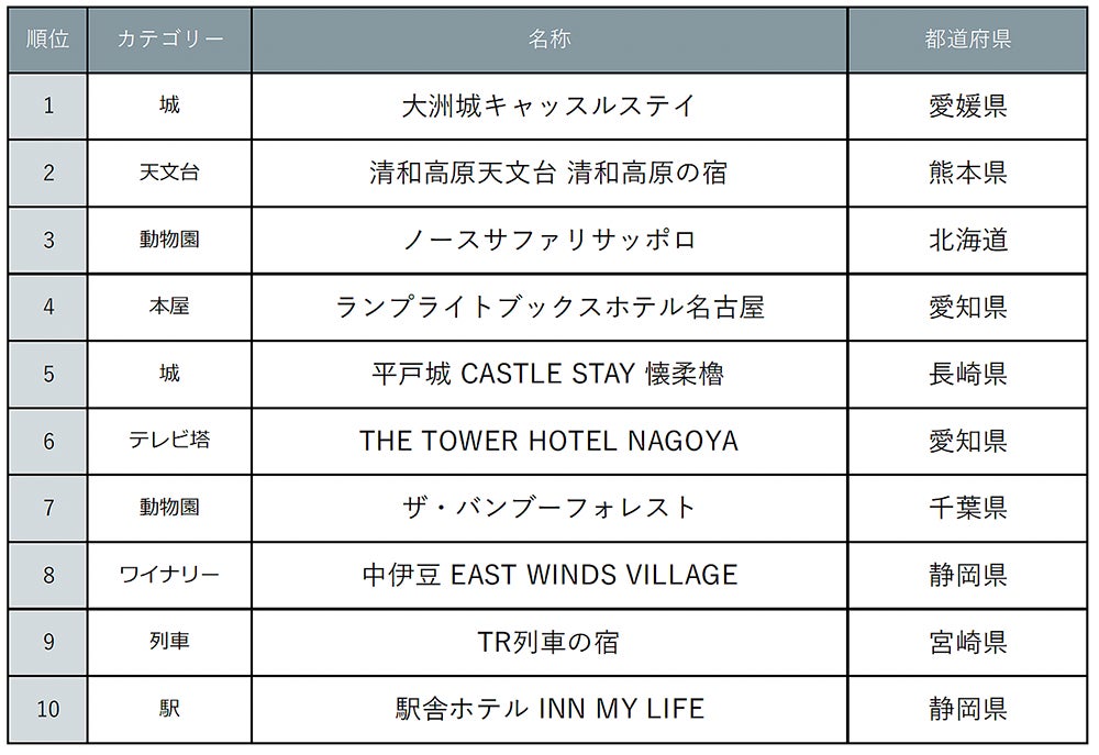 ■『じゃらん』泊まれる意外なスポットランキング:トップ10を紹介