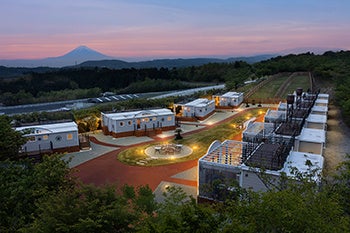 ワイナリーならではのロケーション。そこに隣接するグランピング施設は、目の前に広がる広大なぶどう畑と雄大な富士山の眺望が魅力。宿泊者にはワイナリーのガイドツアー特典のほか、源泉かけ流し100%の天然温泉が楽しめるなど、伊豆の大自然の中でラグジュアリーなひとときを過ごすことができる。