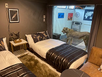 動物たちとふれあえる体験型動物園。園に併設する北海道アニマルグランピングではさまざまな動物たちと一緒に宿泊できる。ライオンとガラス1枚隔てた部屋に泊まったり、アザラシやペンギンと一緒に過ごせるコテージなど動物園に泊まる宿泊体験ができる。2023年にオープンしたペットOKのHANAREコテージにはドッグラン兼用の専用庭があり愛犬も一緒に遊べる。