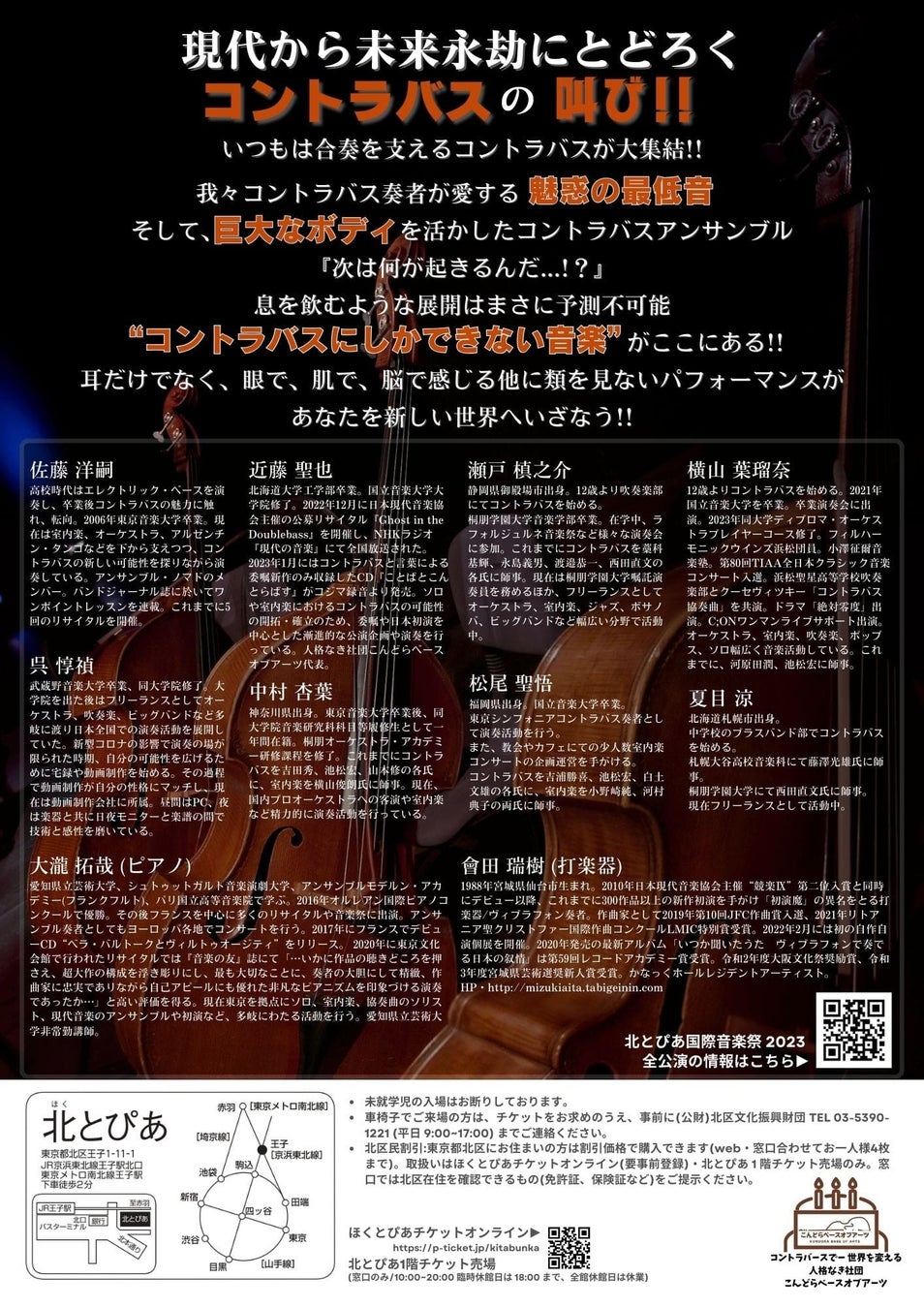 ポップスやクラシックの有名曲の編曲作品が取り上げられることの多いこの編成において、国内外の著名な作曲家達が「コントラバスアンサンブル」のために作曲した様々なアプローチによる作品を一挙に演奏します。