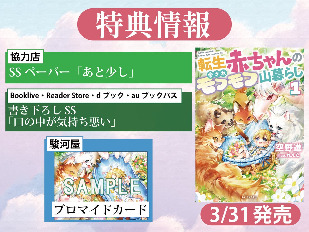 マイクロマガジン社(東京都中央区)は、GCノベルズ『転生赤ちゃんの愛されモフモフ山暮らし 1』(小説:空野進 イラスト:れんた)を2025年3月31日に発売いたします。