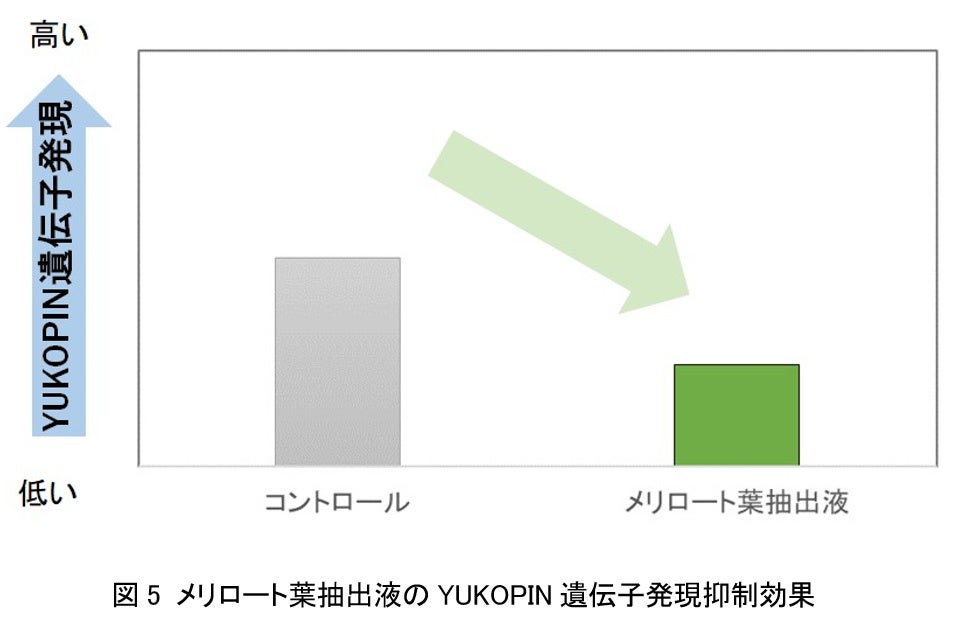 角層剥離を阻害する働きを持つことがわかったYUKOPINについて、その機能を抑える薬剤の探索を行いました。その結果、マメ科植物の一種であるメリロート葉の抽出液(図5)やサトウダイコン由来成分といった成分に、YUKOPINの遺伝子発現量を抑制する効果を見出しました。