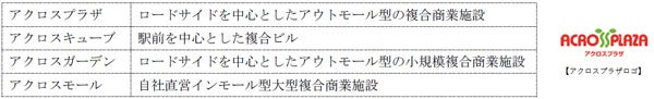 当社はロードサイドを中心としたアウトモール型の複合商業施設「アクロスプラザ」を全国で約120カ所展開しています。