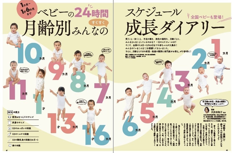 そこで全国の1カ月~1才6カ月までの赤ちゃんが大集合! みんなの「いまこんな!」を披露してもらいました。さらに、月齢ならでは成長・発達の疑問に専門家がお答え。ぜひ参考にしてみてください。