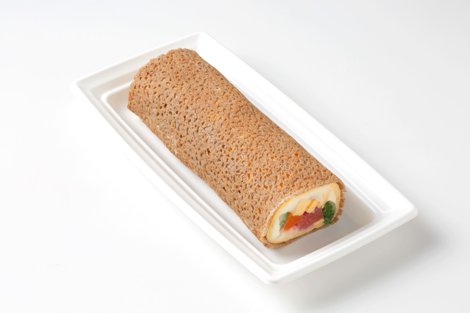 スモークサーモン、生ハム、ポテトサラダと彩り豊かな野菜をガレット生地で巻いた洋風恵方巻き