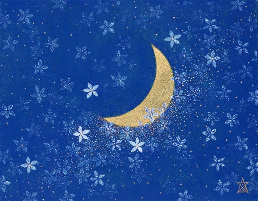 今年奉納された、襖絵の図案にちなみ描かれた作品で、花びらが星、星が花びらへと繰り返し生まれ変わるという輪廻転生をテーマに制作された作品。