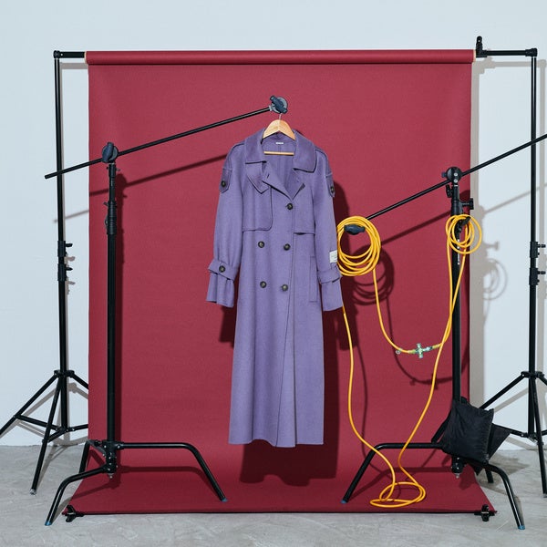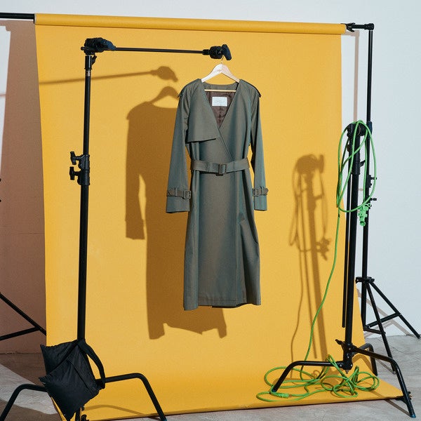 ブランドのアイコニックなトレンチコート。首元がすっきり見えるノーカラー仕様ゆえインナー問わず着用できる。