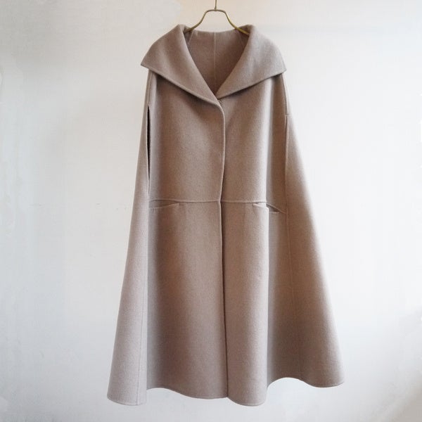 昨年人気を博したケープ型ダウンは、ゆったりとしたフォルムが優雅な印象。※10月中旬入荷予定