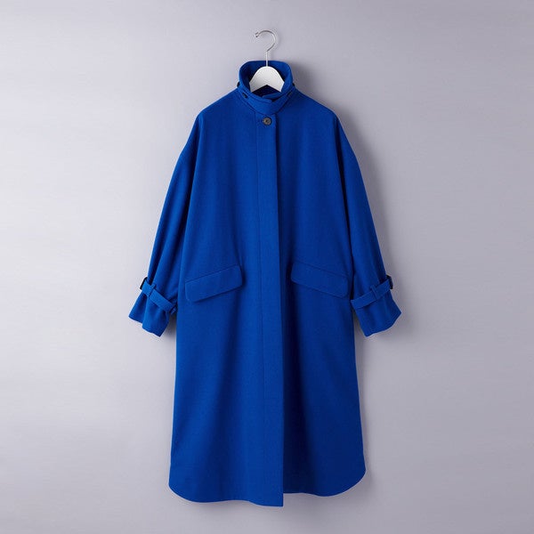 深いブルーが今年らしさを、ゆとりのあるマント風シルエットが上品さを演出。