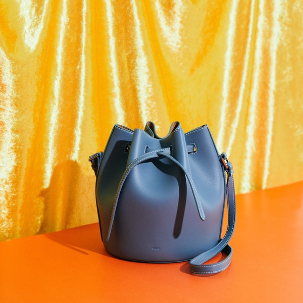 メタリックな三角ピースを配した箱型ショルダーは、男女ともに使いやすいミニマルなデザイン。