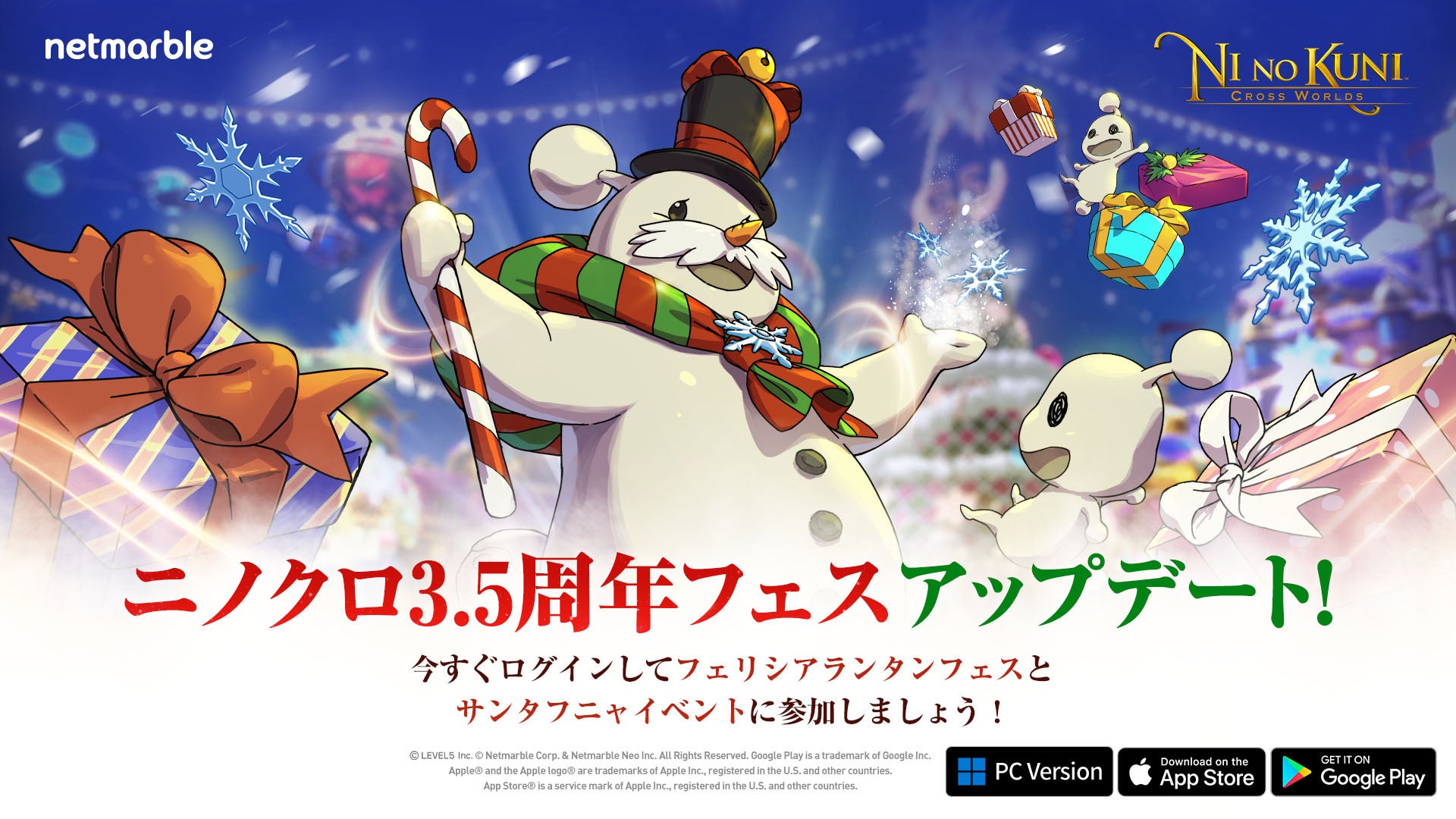 ネットマーブルは、 レベルファイブとタッグを組みサービスを提供しているファンタジーアートRPG『二ノ国:Cross Worlds』(略称:ニノクロ)において、 12月12日(木)に、サービス開始3.5周年を記念したイベントを開催するゲームのアップデートを実施いたしました。