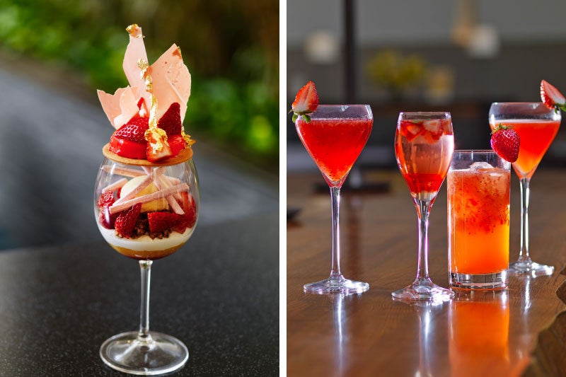 新鮮ないちごをふんだんに使い、その瑞々しさをグラスいっぱいに閉じ込めました。ジューシーな果実感と、カシスや ピーチの華やかな香りが溶け合う春にぴったりの1杯です。提供時間:16:00-23:00