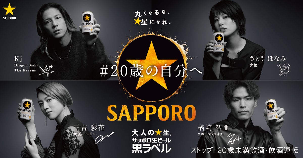 「サッポロ生ビール黒ラベル」スペシャルインタビュー企画「#20歳の自分へ」をテーマに、4名の著名人による 20歳を迎えるすべての大人に送るスペシャルメッセージを公開