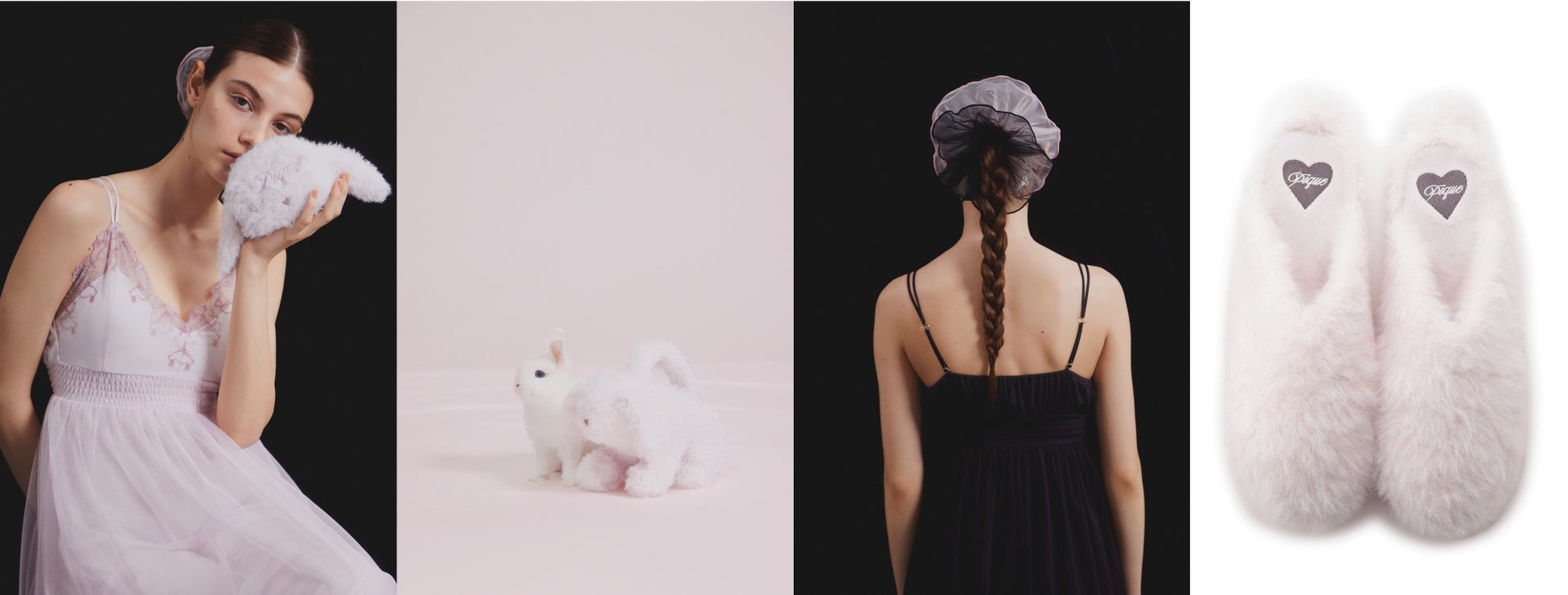 オリジナルレースを使用したチュールワンピースや、一緒にお出かけもできるバニー型バッグもラインアップ。