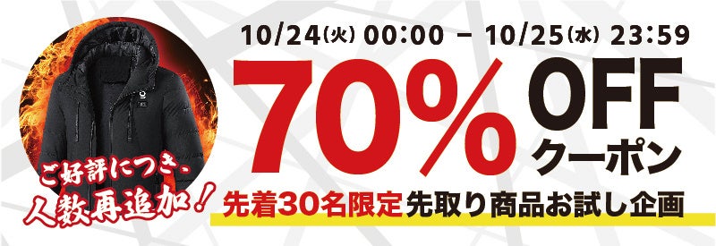 条件・期間 | 先着30名様 10/24(火)00:00 ~ 10/25(水)23:59 |