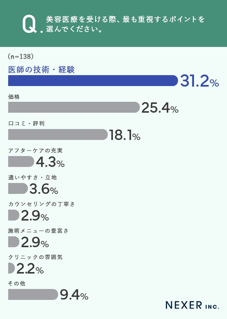 株式会社NEXER・美容医療クリニックを選ぶときに重視するポイントに関する調査