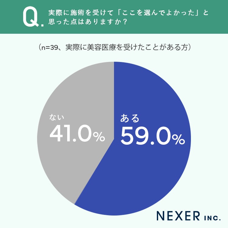 実際に美容医療を受けたことがある方に「ここを選んでよかった」と思った点があるかを調査しました。