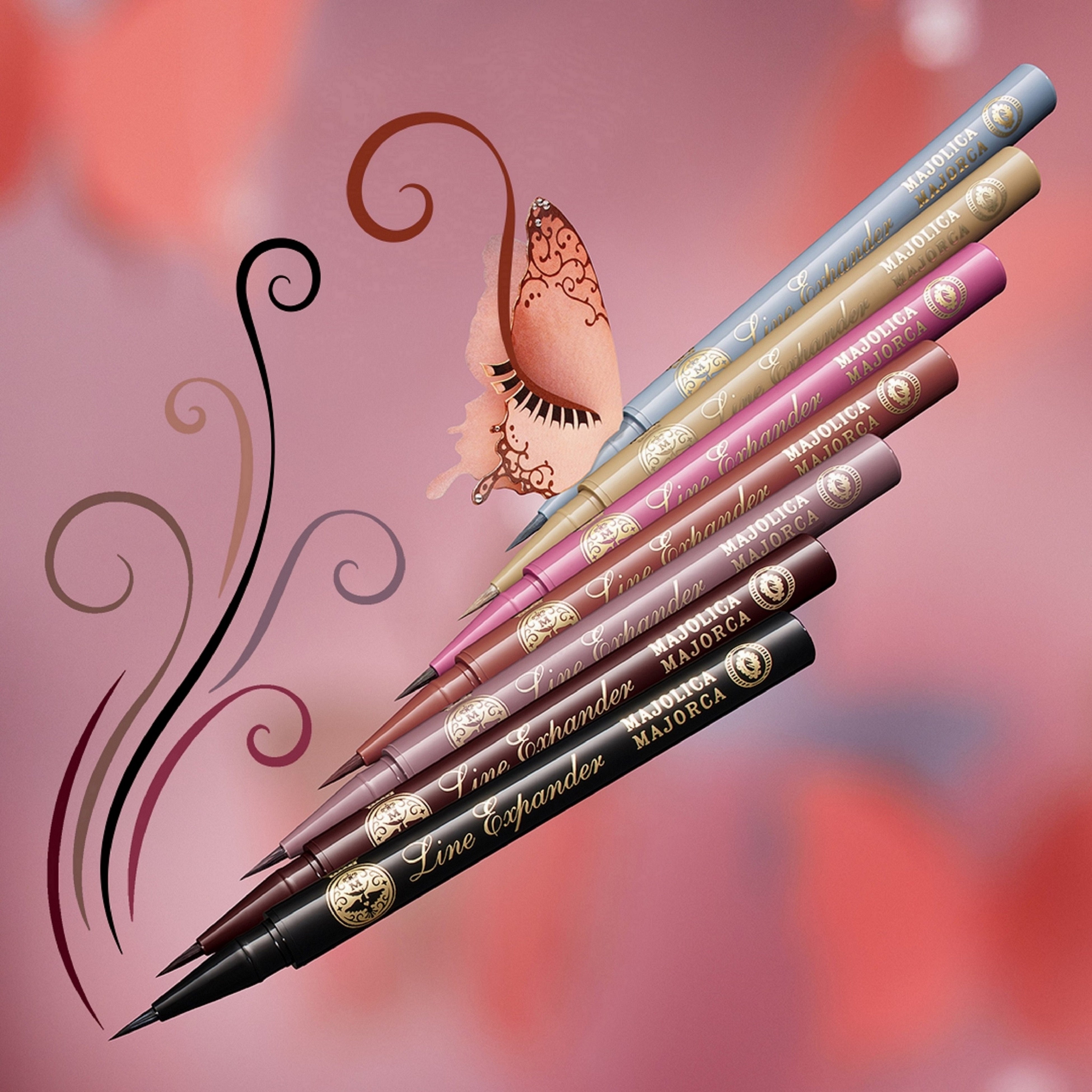 ◆「マジョリカ マジョルカ ラインエキスパンダー」は、瞳に宿る色とリンクした7色のカラーで肌から浮かずにカラーメイクを思いのままに楽しむことができるだけでなく、黒目がちな大きな瞳に仕上がる濃密発色のリキッドタイプのアイライナーです。