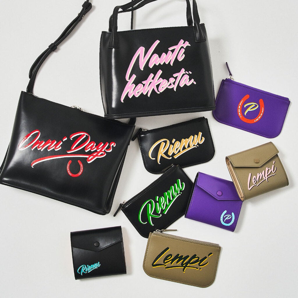 ロゴ入りのバッグやウォレットも数量限定で販売いたします。