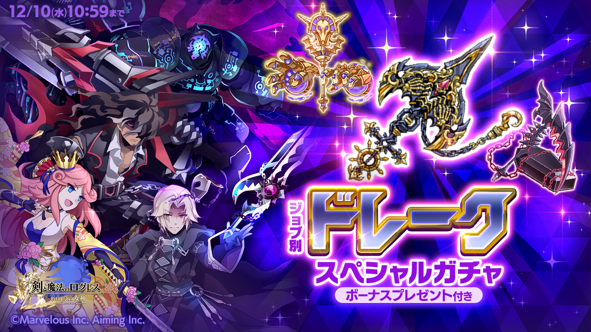 株式会社マーベラス(代表取締役社長:照井 慎一/所在地:東京都品川区)は、スマートフォン向け本格オンラインRPG『剣と魔法のログレス いにしえの女神』において、2025/11/26(水)に「ログレス ワールドエキスポ」のクエスト追加、および「ジョブ別 ドレークスペシャルガチャ」の販売を含むアップデートを行ったことをお知らせいたします。