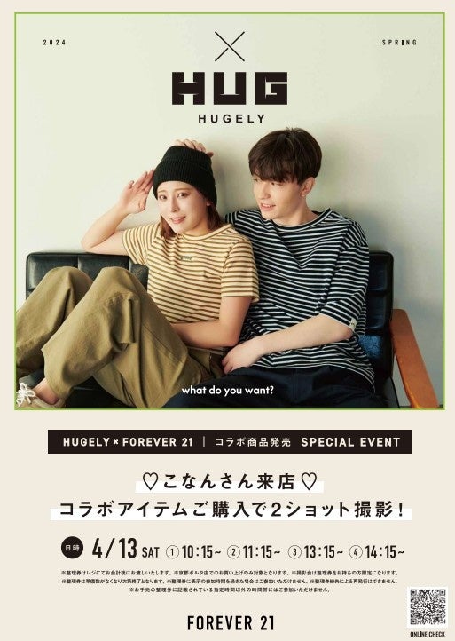 「FOREVER 21」がSNS総フォロワー120万超えのインフルエンサー・こなんプロデュースブランド「HUGELY」と、初のコラボアイテムを4月12日(金)より発売!