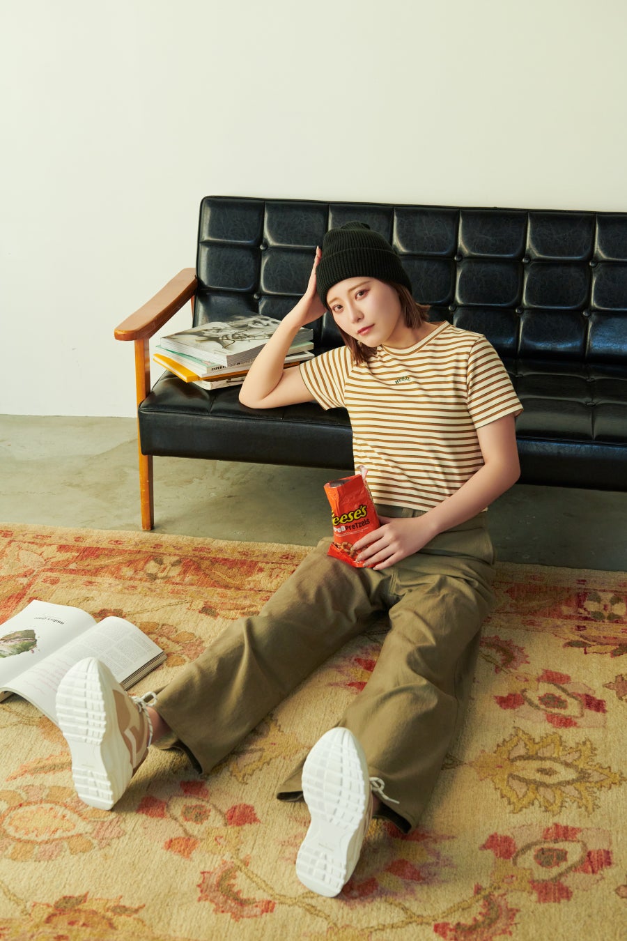 こなんが全面的にプロデュースするアパレルブランド「HUGELY」は、レディースはもちろん、ユニセックスアイテムも多数取り揃えているブランドです。コラボレーションのアイテムは、Tシャツ2型・パーカー2型・ボトムス1型 の全5型。ユニセックスで着用ができるパーカーや、今年らしいコンパクトシルエットのボーダーT、セットアップで着用ができるパイル生地のアイテムなど、「HUGELY」らしさを詰め込んだ“男女ともに”楽しめるラインアップです。刺繍や着用時のシルエットなど、「FOREVER 21」とこなんが一緒に考えた、デザインのこだわりがたくさん詰まっています。