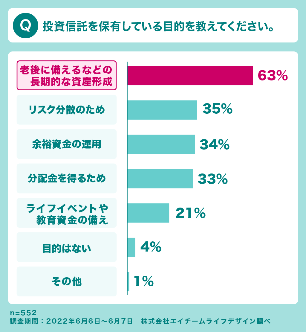 - 投資信託を保有している目的は「老後に備える長期的な資産形成」が1位!