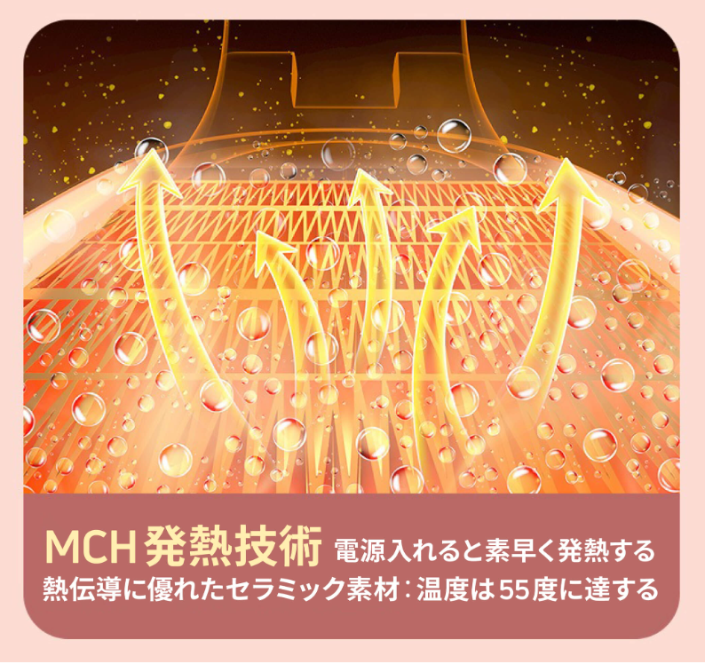 ※ 低温やけどの恐れがありますので長時間の連続使用はお避け下さい。異常を感じた場合は速やかに使用を中止して下さい。