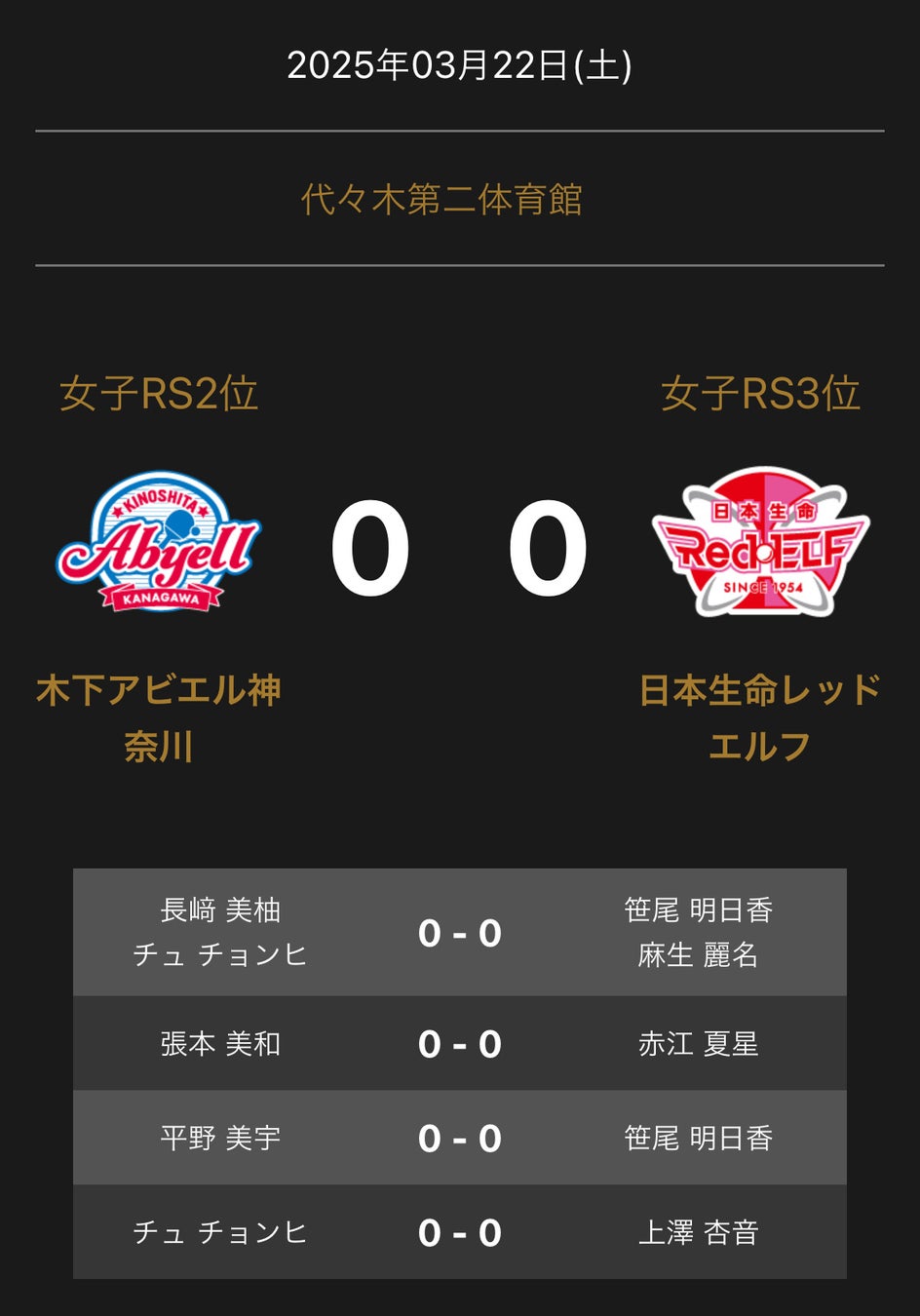ノジマTリーグ 2024-2025シーズン 公式戦 3月21日開催 女子セミファイナル 木下アビエル神奈川 vs 日本生命レッドエルフ 対戦オーダー発表