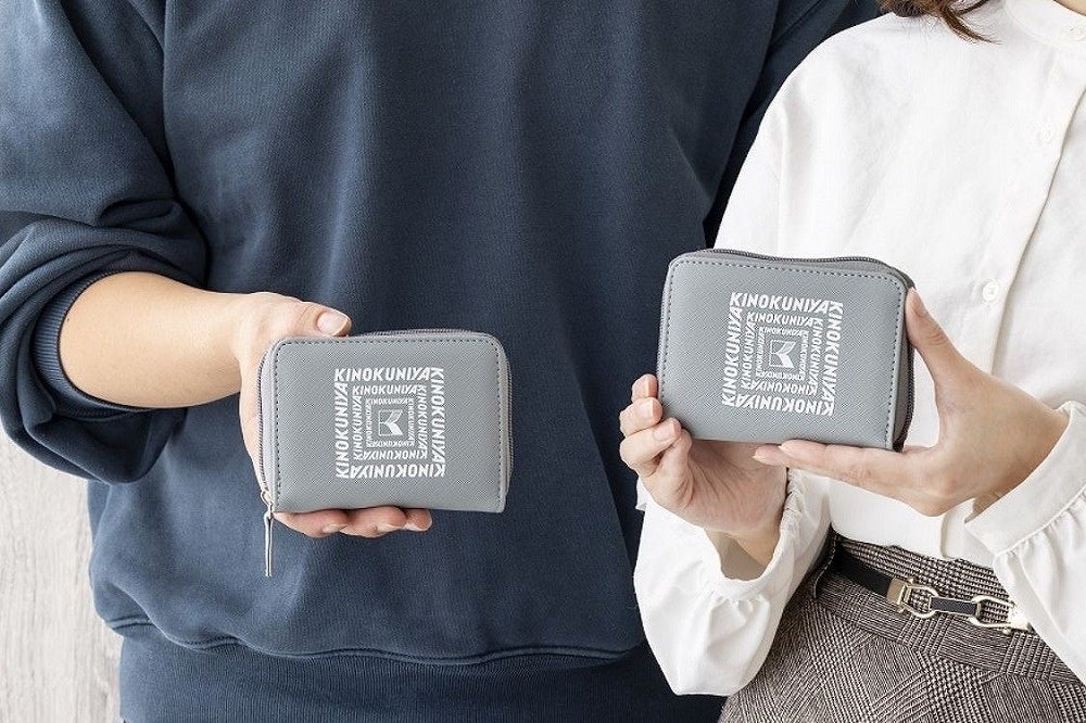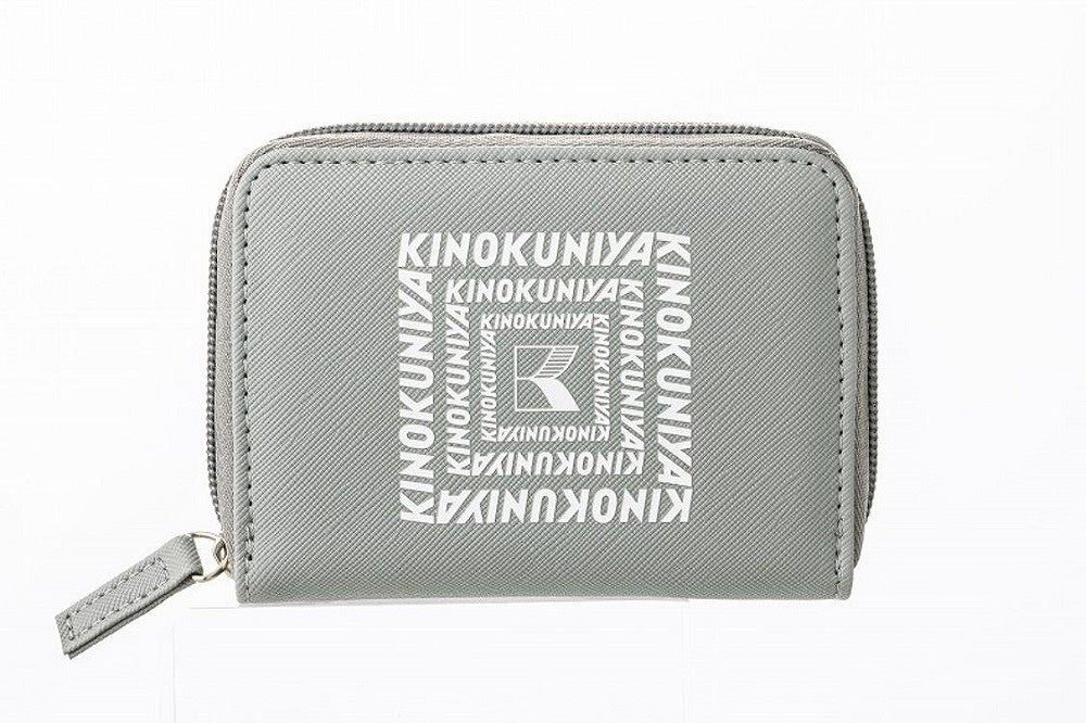 人気スーパーマーケットKINOKUNIYAのロゴがデザインされたグレーのミニ財布は老若男女誰でも使いやすく、シンプルななかに親しみが感じられるデザインです。