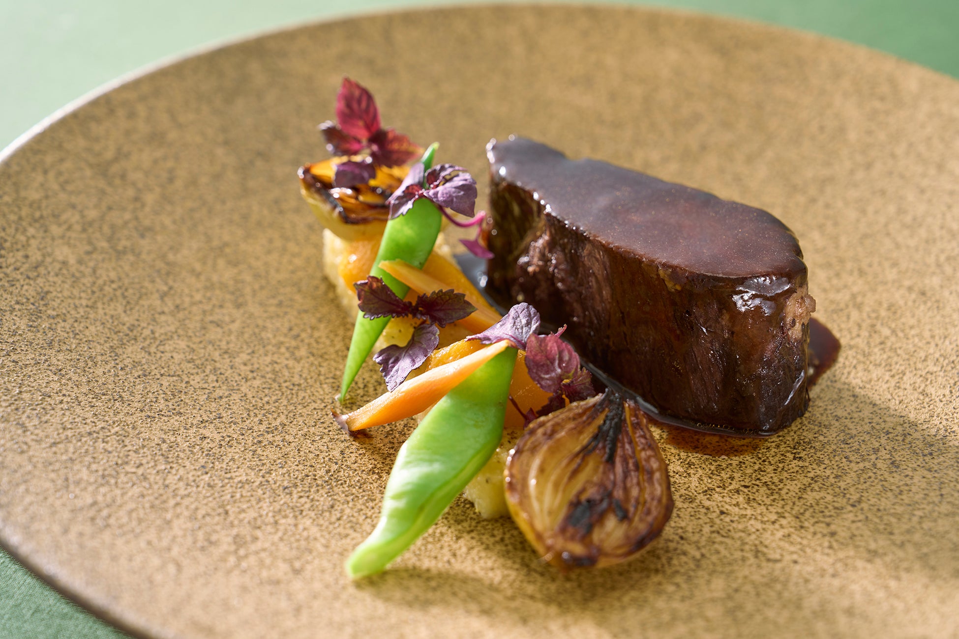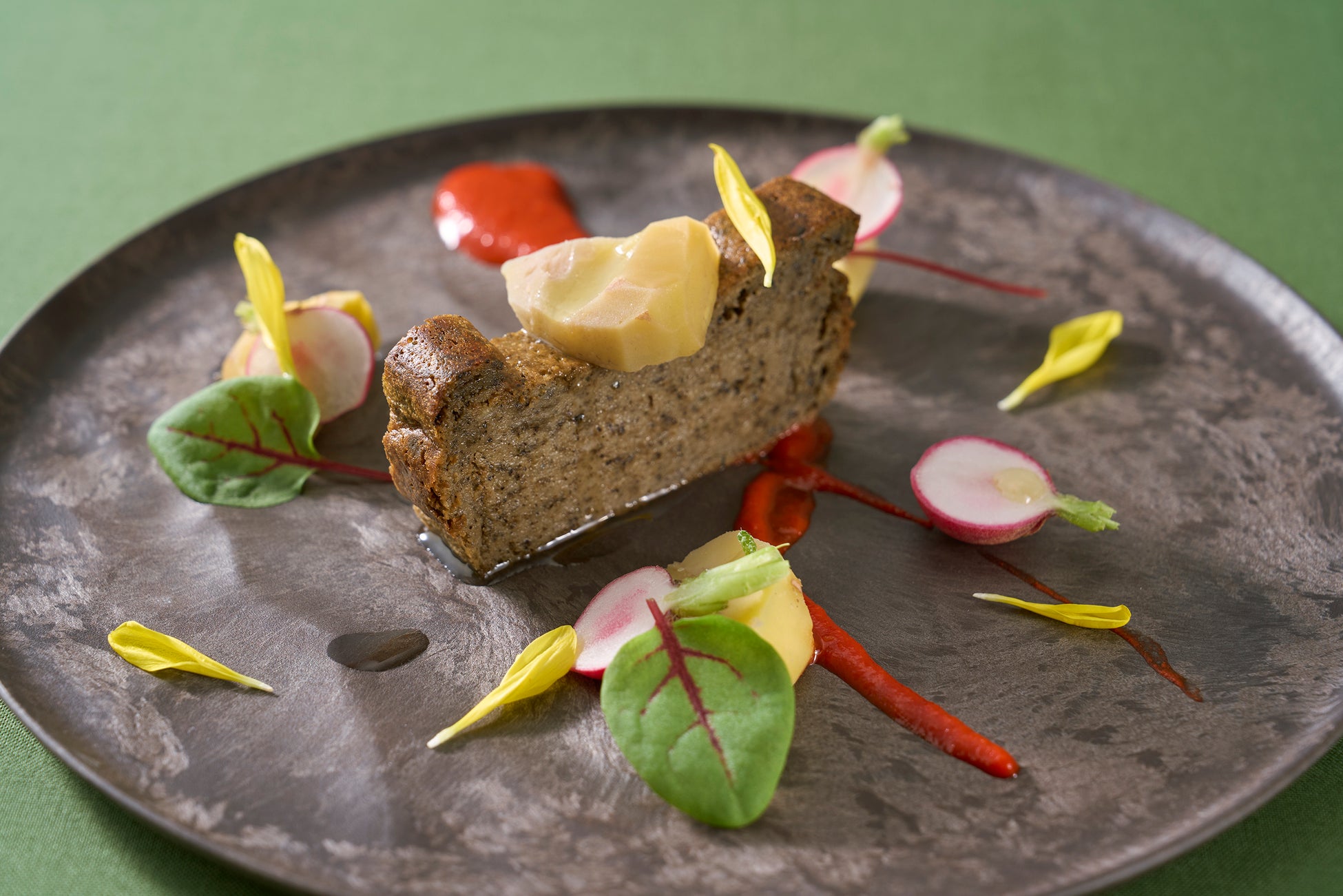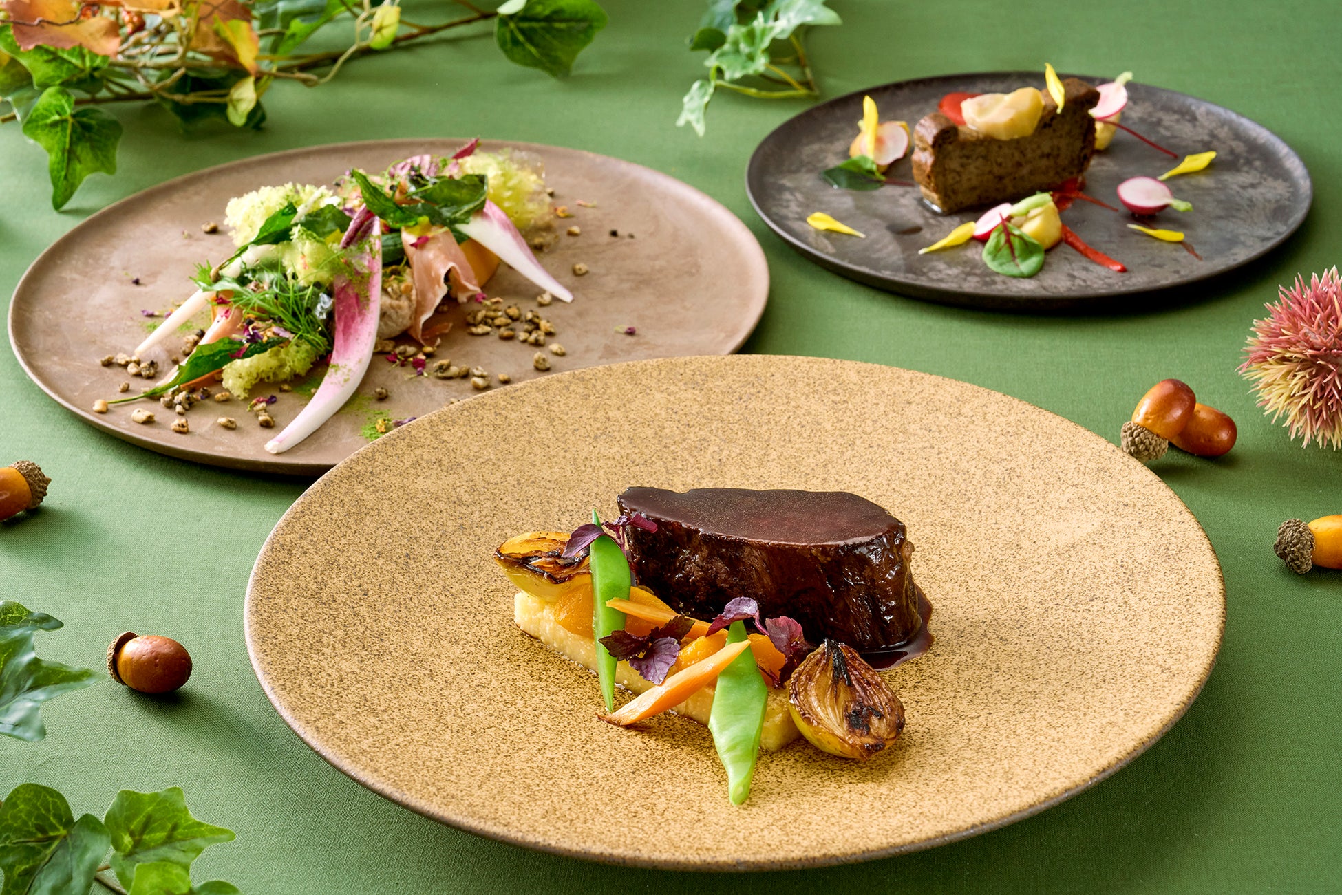 彩り豊かな京都丹波イタリア野菜を添える「~京の森の情景~“京都丹波イタリア野菜アグリージョ”より届く野菜と丹後鹿のシャルキュトリ」は、皿の上に、“地域が紡いだ森の香り”、秋の彩りを視覚と味覚の両面から描いた情景を表現しました。
