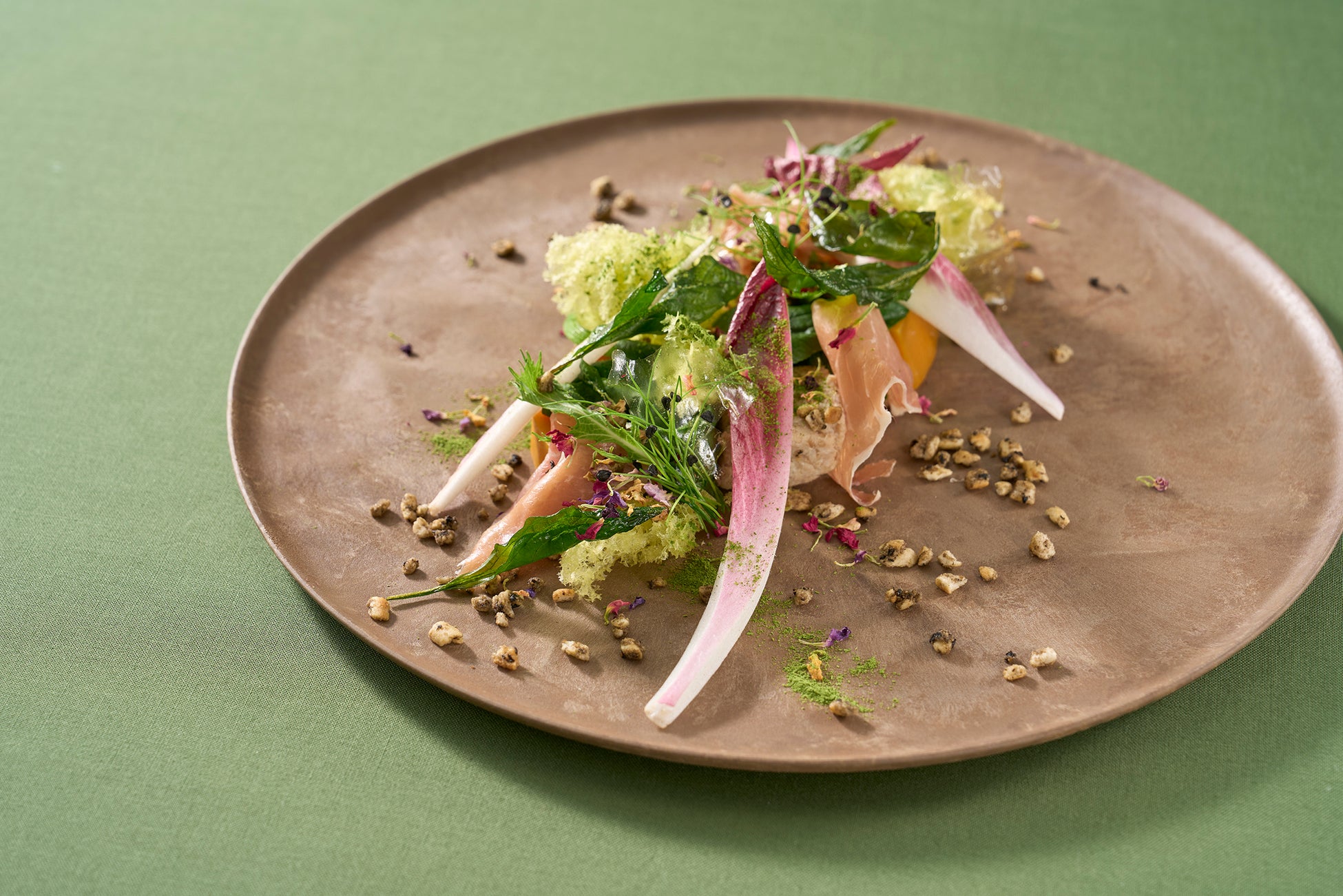 本メニューは、シェフ 寺田 篤史が森の京都エリアの食材にスポットを当て、ここで出会える特別な一皿を追求し、地域への貢献と生産者への感謝を込めた繊細かつ力強い料理を創りあげました。秋の実りとともに、京都の魅力を味わう特別な味わいをご堪能ください。
