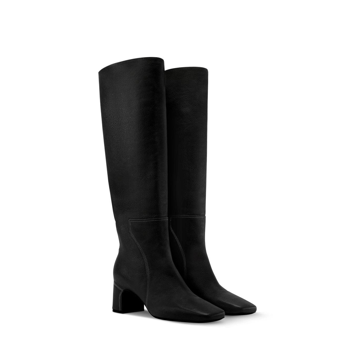 スクエアトウとブロックヒールが印象的な、ルイ·ヴィトン 2026クルーズ·コレクションを象徴する「アヴァロン ハイブーツ」。しなやかなグレインカーフレザーで仕立て、チューブラー製法の構造を引き立てました。プルオン仕様のデザインで、バックに施したループ状のモノグラム·キャンバスのトリミングもアクセントになっています。