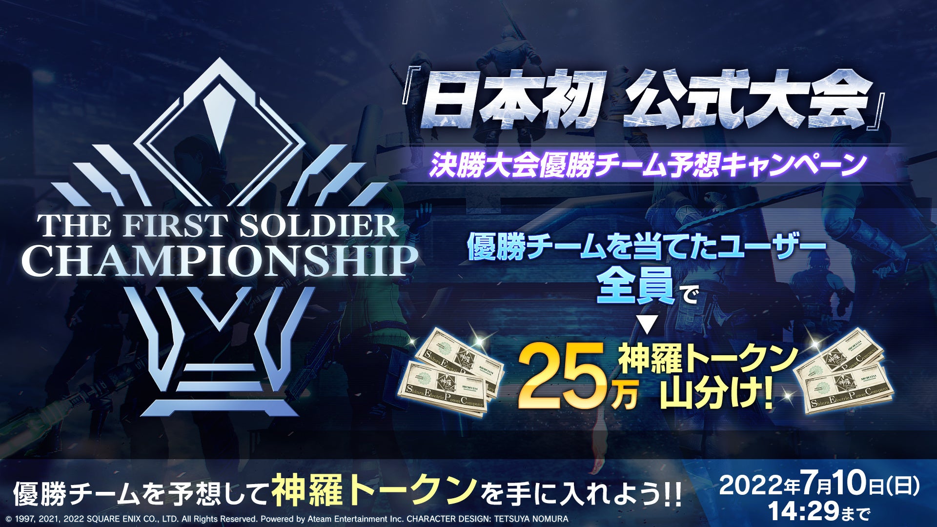 優勝チームを予想し、見事的中させた方に神羅トークン(ゲーム内通貨)をプレゼント!予想が当たった方全員で25万神羅トークンを山分けしていただきます。
