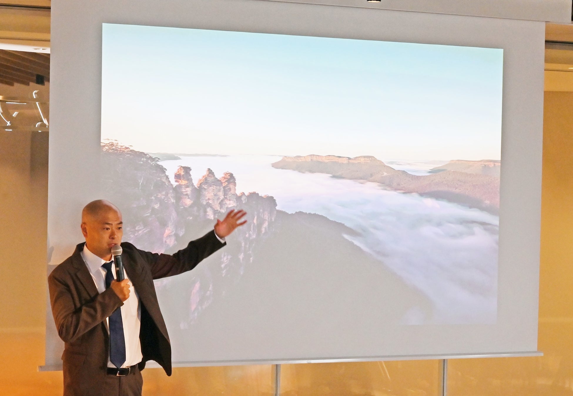 特定非営利活動法人世界遺産アカデミー 世界遺産検定事務局の主任研究員である宮澤光氏が登壇し、そもそも世界遺産とは何なのか、そしてオーストラリアにある世界遺産について解説しました。