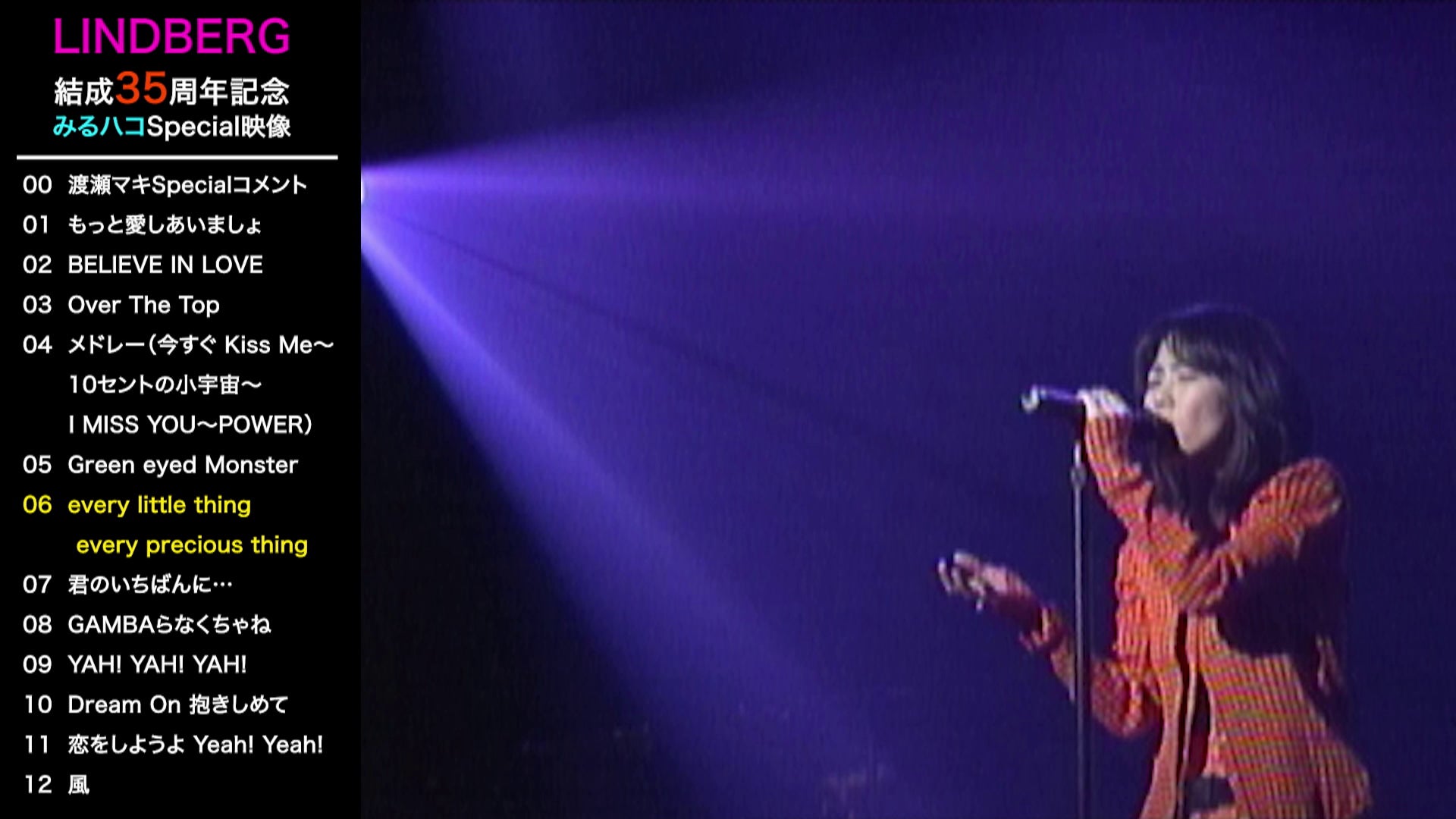 渡瀬マキSpecialコメント/もっと愛しあいましょ/BELIEVE IN LOVE/Over The Top/メドレー(今すぐ Kiss Me~10セントの小宇宙~I MISS YOU~POWER)/ Green eyed Monster/every little thing every precious thing/君のいちばんに…/GAMBAらなくちゃね/YAH! YAH! YAH!/ Dream On 抱きしめて/恋をしようよ Yeah! Yeah!/ 風
