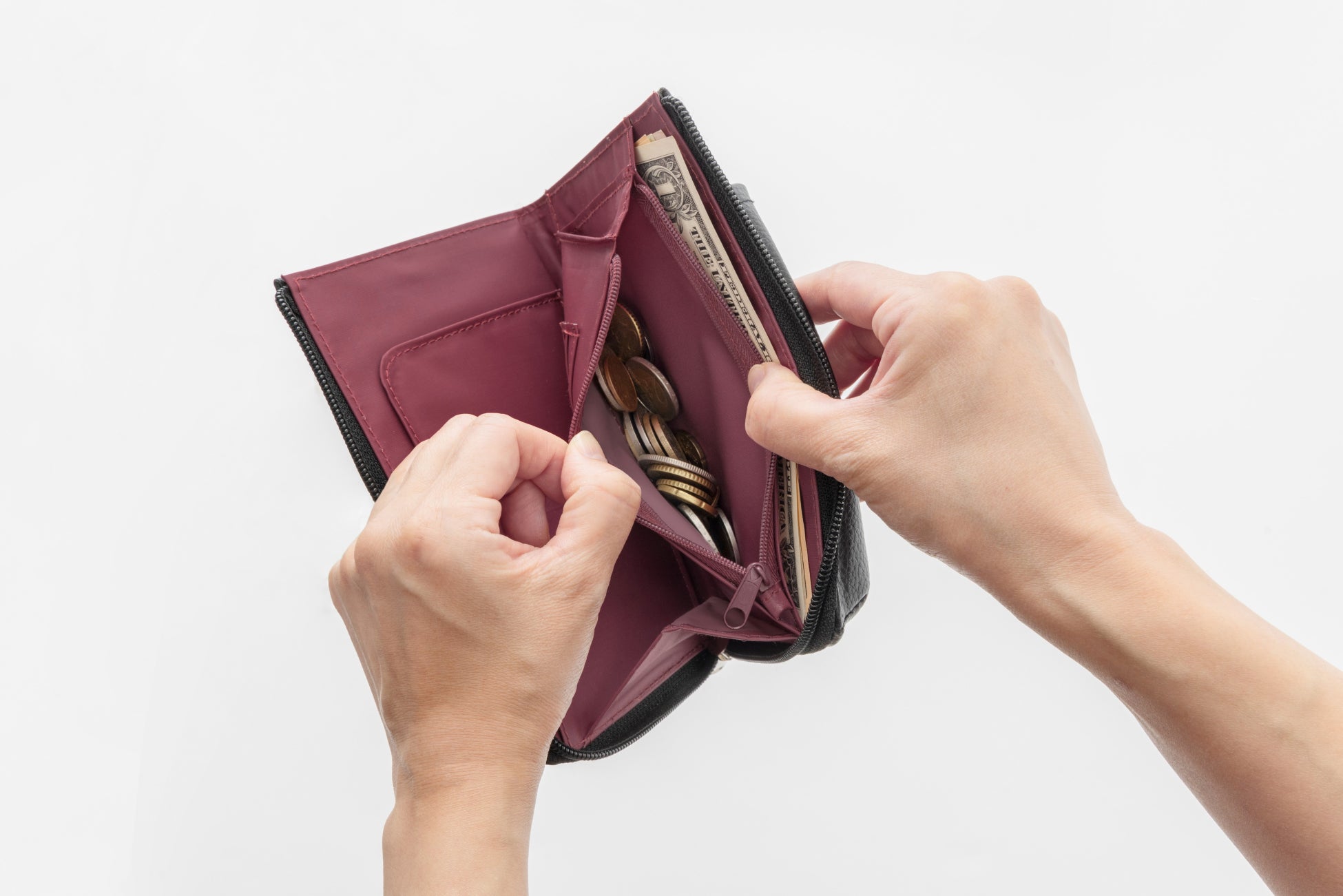 ▼開けるとブランドカラーの赤が♪ ガバッと開いて中身が一目でわかる利便性!