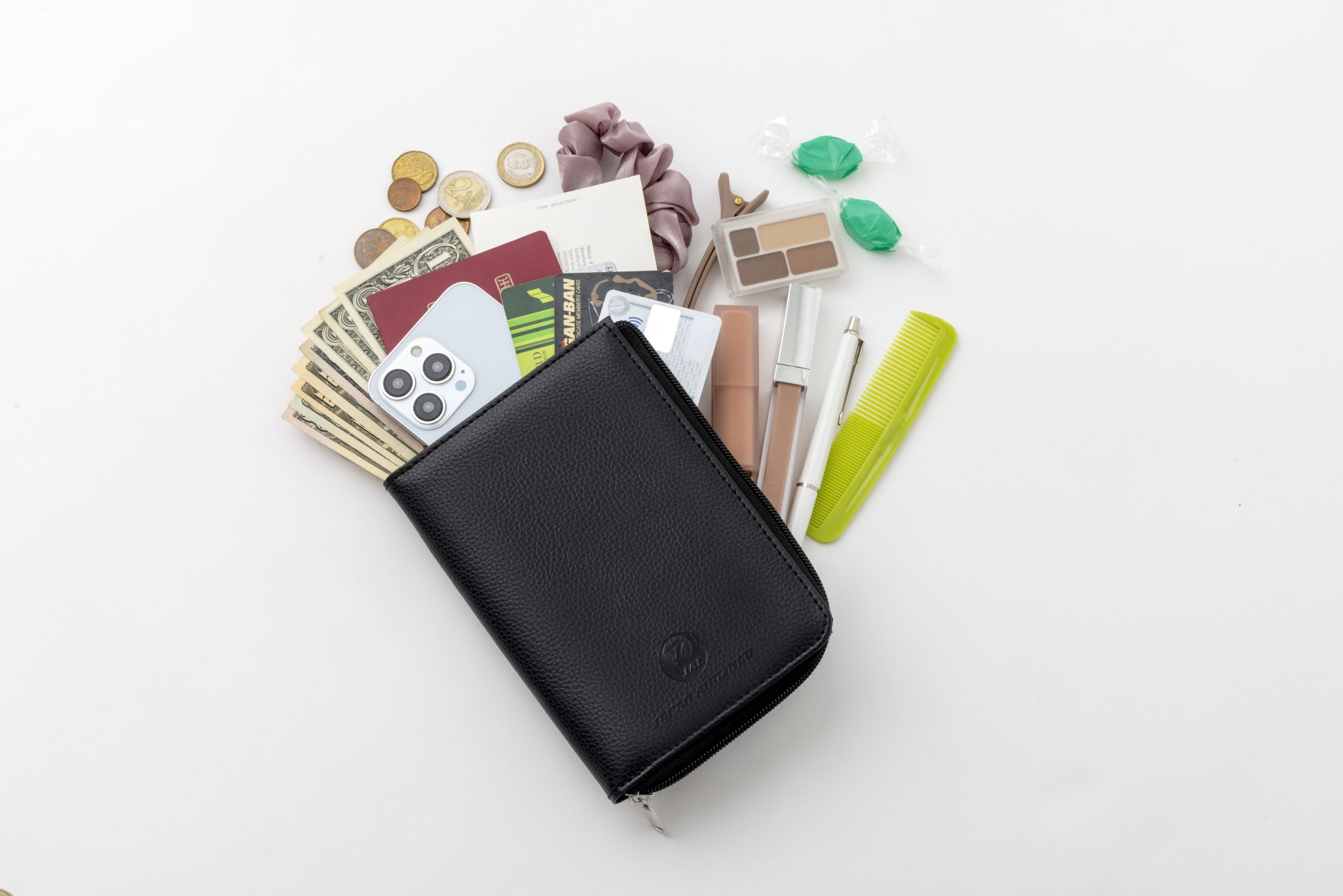 ▼パスポートをさっと取り出せる仕切りや、ポケットなどの収納が豊富で旅行にピッタリ!