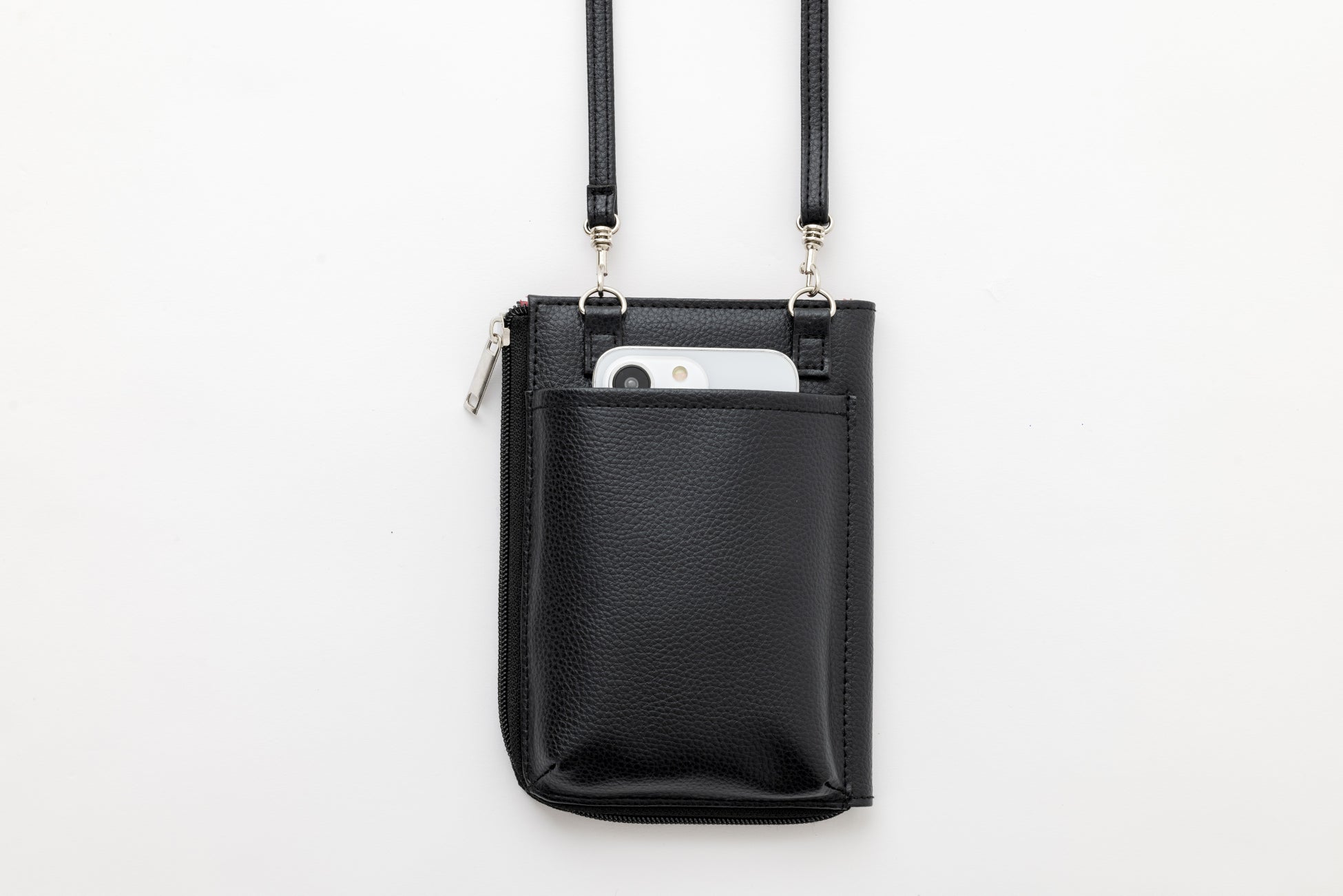 2023年11月に発売した『JALと考えた多機能バッグインバッグBOOK』に続く、待望の第2弾が登場。今回の共同開発アイテムは、旅行や普段使いに最適なこだわりたっぷりのスマホショルダーで、黒をベースにしたデザインには、JALのロゴマークを型押しでオン。アイテムの内側はJALのブランドカラーの赤となっています。素材はレザー調で高級感があり、どんなファッションにも合うカラーとデザインです。