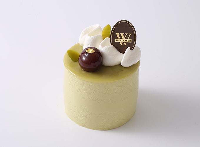 やさしく香るピスタチオと濃厚なレアチーズを組み合わせ、プチプチとした食感のイチジクのコンフィチュールがアクセント。ピスタチオの香りが後を引くレアチーズムース。濃厚なのに後味が優しいまろやかなケーキです。