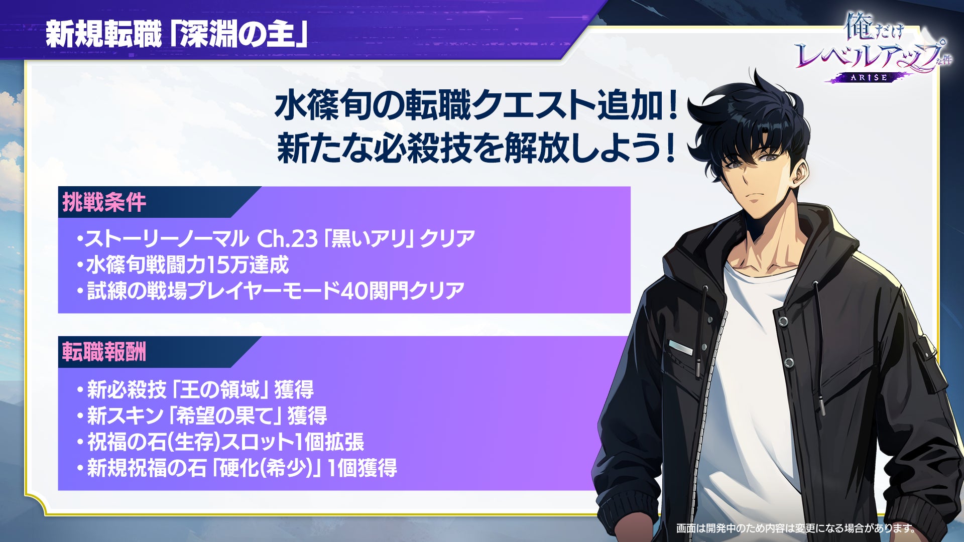 本アップデートより、「水篠旬」の新規転職「深淵の主」や「水篠旬」の新SSRイベント武器「黄金尾ノ狐」、新たな祝福の石5種が登場しております。