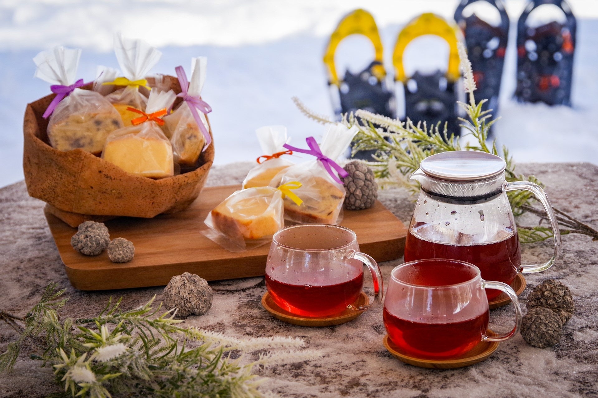 暖かいお茶と焼き菓子でHOTと一息。 ※万座プリンスホテル初の女性