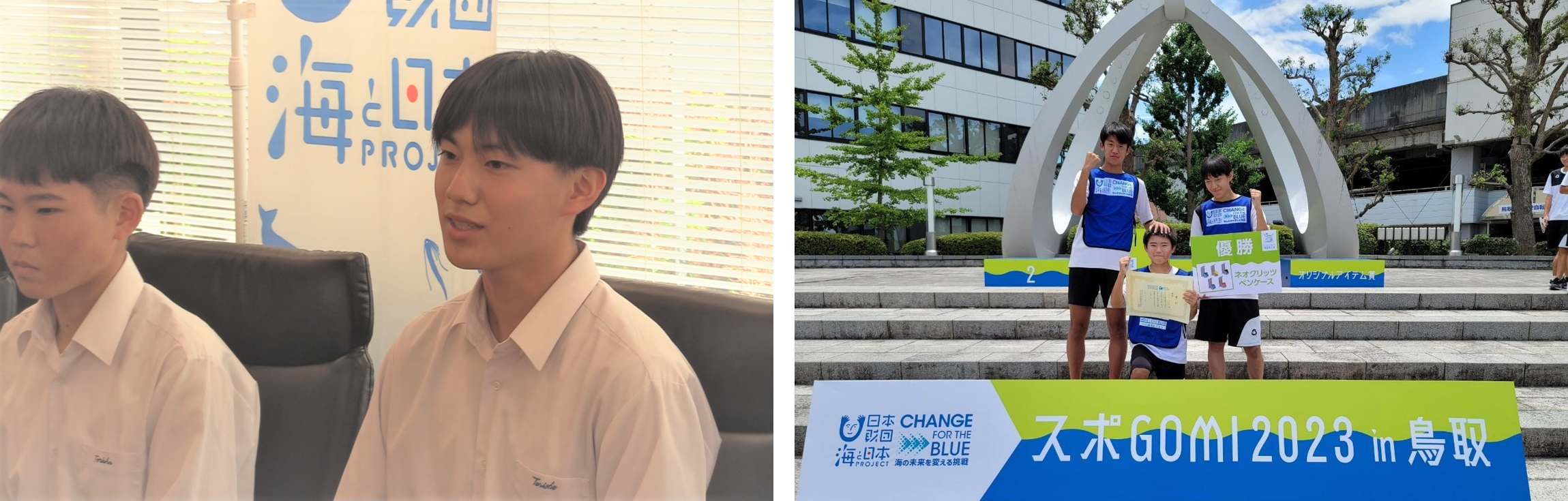 スポGOMI甲子園の鳥取県大会で優勝し、初代鳥取県王者になられたことお祝い申し上げます。ごみの問題は鳥取だけでなく世界の問題で、持続可能な循環型の社会に転換を図っていかなければなりません。「海洋ごみの問題をどうするか」これも大きな課題となっております。こうした中、高校生のみなさんがスポGOMI甲子園を通してごみの問題に関心を持ってもらい、直接行動をされたということは非常に素晴らしいことだと思います。全国大会でも自信をもって大いに活躍してほしいと思います。