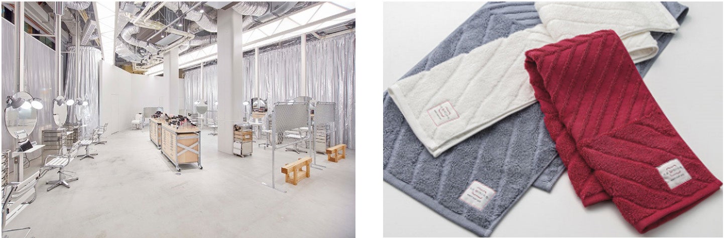 資生堂ビューティ・スクエア店内奥のサロンゾーンにて、ヘアカットメニューをご利用のお客さま対象に、素早い吸水性を追求したクイックブロータオルをご体感いただけるメニューをご用意。ドライヤーの時間も短縮できて髪にやさしいタオルは、ロング・セミロング・ショートヘア用と髪の長さに応じたサイズ展開にも注目です。