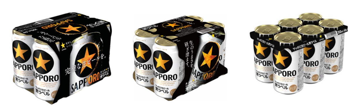 紙使用量を大幅削減した6缶パック資材を「サッポロ生ビール黒ラベル」でテスト販売開始