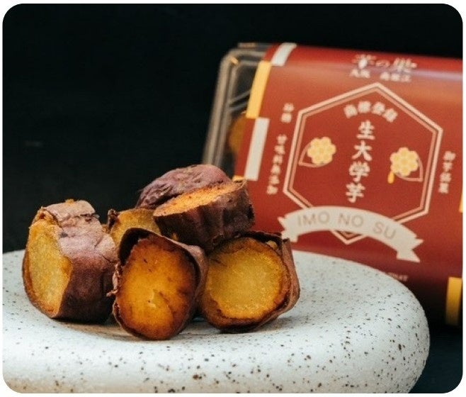 宮崎県の自社農園で、土や水にこだわって作ったサツマイモを使用。気温13度以下の環境で3カ月以上熟成させたおいもは、蜜があふれ出すほど濃厚な甘さとなめらかな食感が魅力。糖度50度超えの贅沢な味わいを楽しめる名物“生ほしいも”をぜひこの機会に。